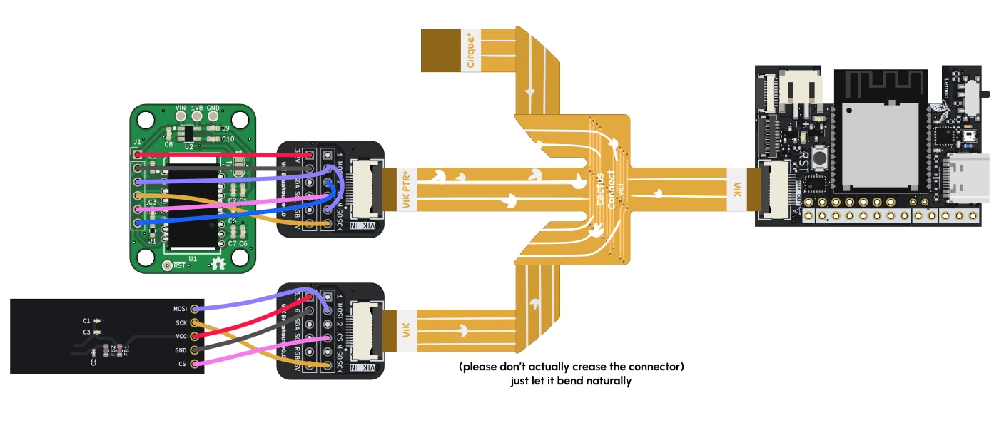 I’ve included two examples here using the Cactus Connector together with VIK breakouts. Most display and trackball sensor PCBs do not support VIK, so you may find yourself having to wire like this. Compared to using a single VIK breakout and running two sets of wires to the peripherals, this way is much neater, especially when you keep the wires between the VIK breakouts and peripherals short.